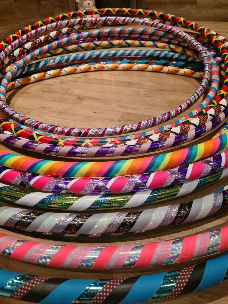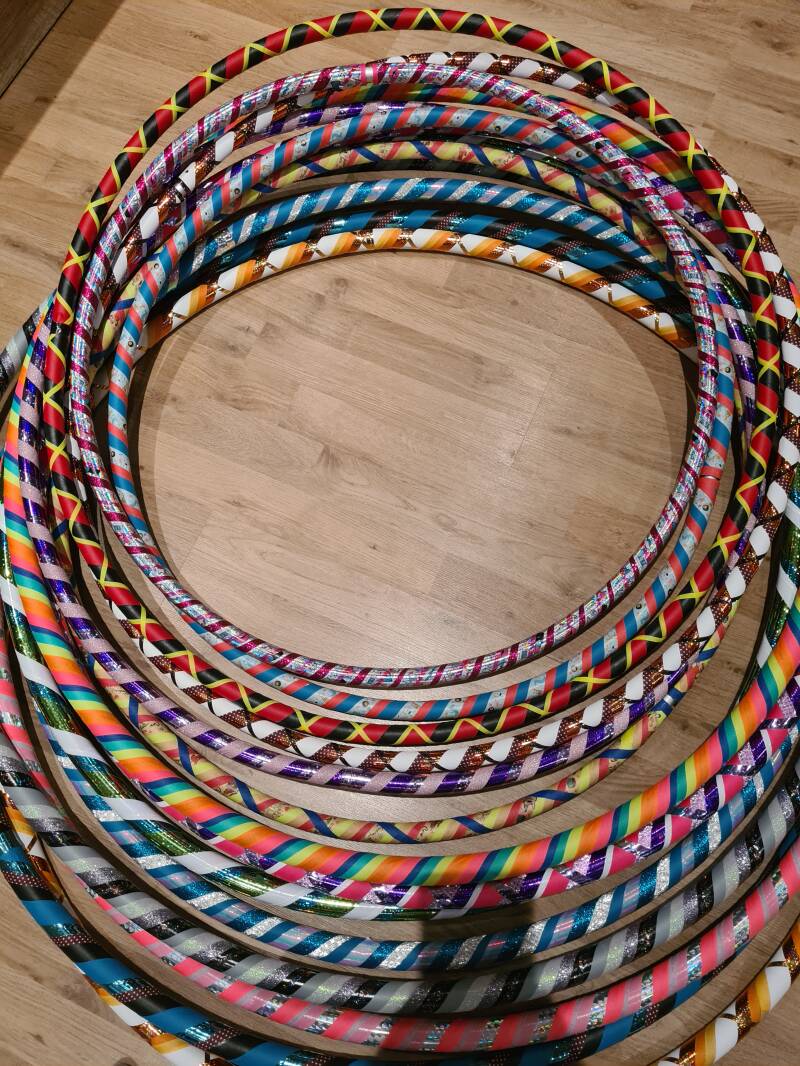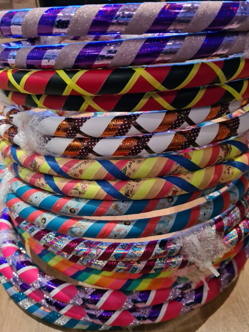 Hier ist ein grosser Auftrag entstanden. Ich durfte ca 25kg bzw 30 Reifen darunter Kinderreifen und Armhoops für einen Jugendverein bauen